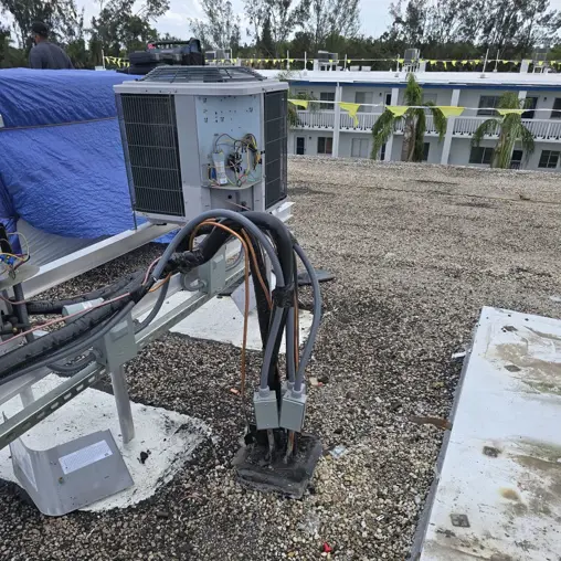 Momentum AC & Electric recently completed a comprehensive HVAC roof modification project to ensure full code compliance and optimal system performance. The scope of work included disconnecting refrigerant lines, line voltage electrical wiring, and control wiring, followed by the reinstallation of condensing units on customer-supplied Aluma-stands. As part of the upgrade, new liquid lines, liquid line filter driers, and suction refrigeration lines with proper supports were installed. Refrigeration lines were brazed from the roof to the unit, and nitrogen testing was conducted to ensure leak-free operation. Additionally, new electrical disconnects and associated whips for conventional split systems were provided and installed, with final electrical connections completed by a licensed electrician. To meet code requirements, storm tie-down kits were also installed for added safety and durability.